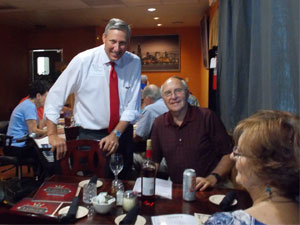 PHOTO: State Representative Drew Springer serves Richard and Linda Lira at the Celebrity Wait held at Luigi’s Restaurant.