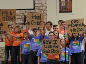 Giddings State School youth sang along to "Man in the Mirror" and listened to the powerful message in the lyrics of every song the group performed. Mirror Image members shared with Giddings youth their own personal struggles through testimonials on cardboard signs that, when reversed, showed how God’s love helped them overcome.