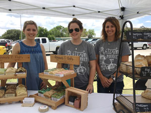 Debra Mathis of the Texas Community Farmers Market displayed fresh and dried fruits, trees, plants, vegetables, and jellies. Rebecca Morelock from Bake Artisan Goods offered artisan bread and more. Krista Behler of Crossed Oaks Design exhibited handmade signs. Aaron and Lark Terry, owners of Arrows and Oaks, offered goat milk soaps and lotions. And Cricket Wireless provided a variety of phone plans and accessories. The vendors said that it was more successful than they expected and that they would love to come out and bring more vendors for the October blood drive.